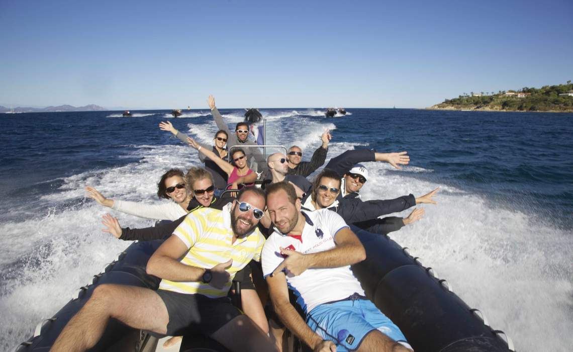 Boarding in the Gulf of St Tropez for a scenarised RIB rally suited to your group.