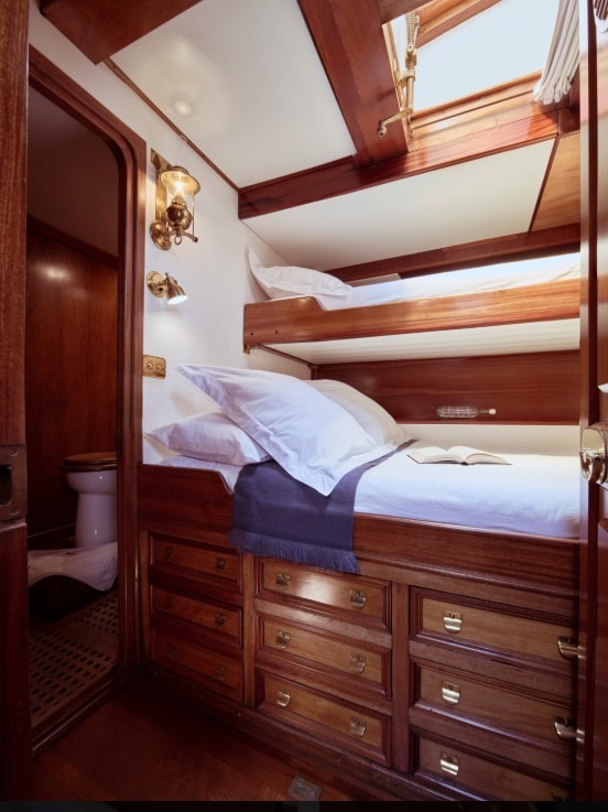 - Cabins: 3 doubles + 1 extra (up to 8 guests)
