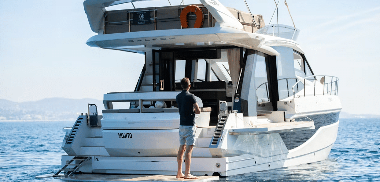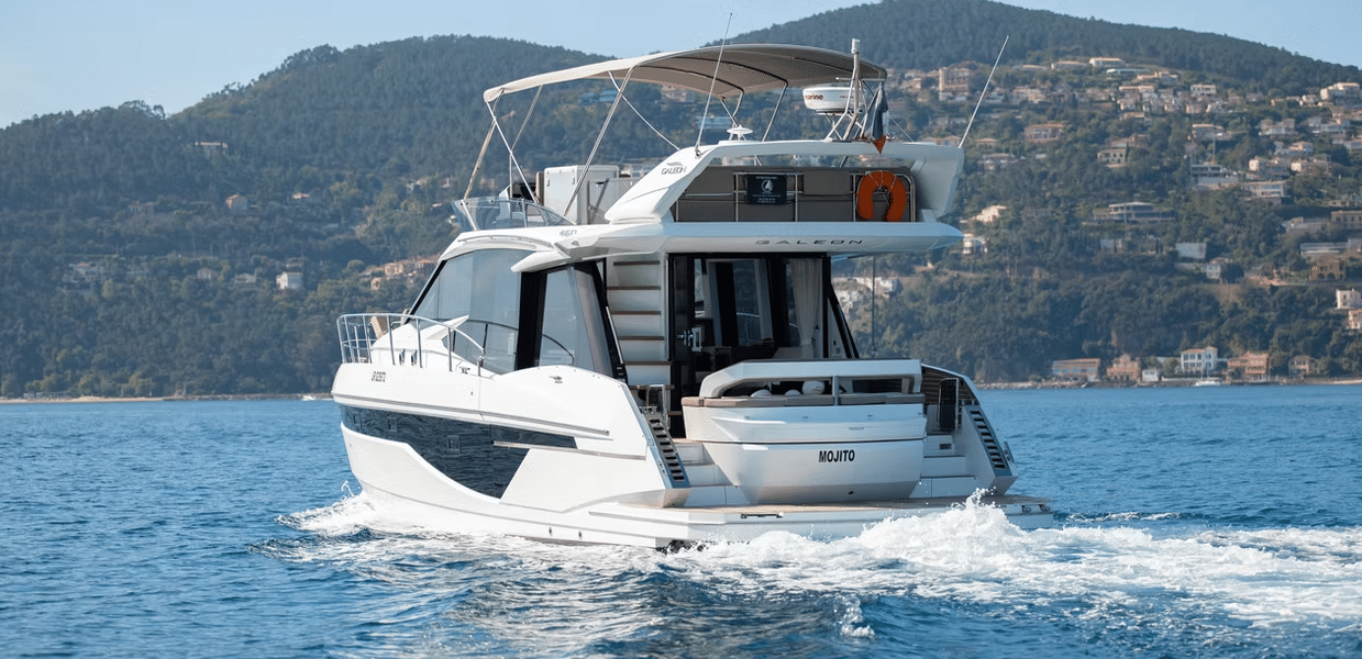 The Galeon 460 Fly is the perfect choice to combine luxury, innovation, and conviviality for private or corporate events on the French Riviera.
