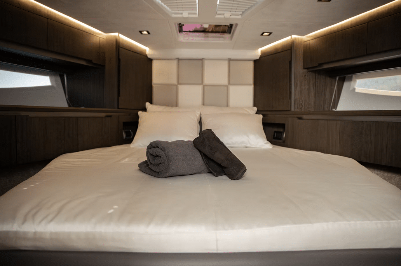 - 3 modern, luxurious cabins with ample storage (6 berths)