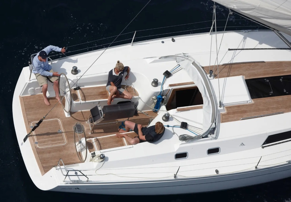 The Hanse 430 is a sailing yacht measuring approximately 13.15 meters overall, designed to offer speed, safety, comfort and refined design. Every detail has been carefully considered to ensure a pleasant, easy-going and aesthetically striking sailing experience.