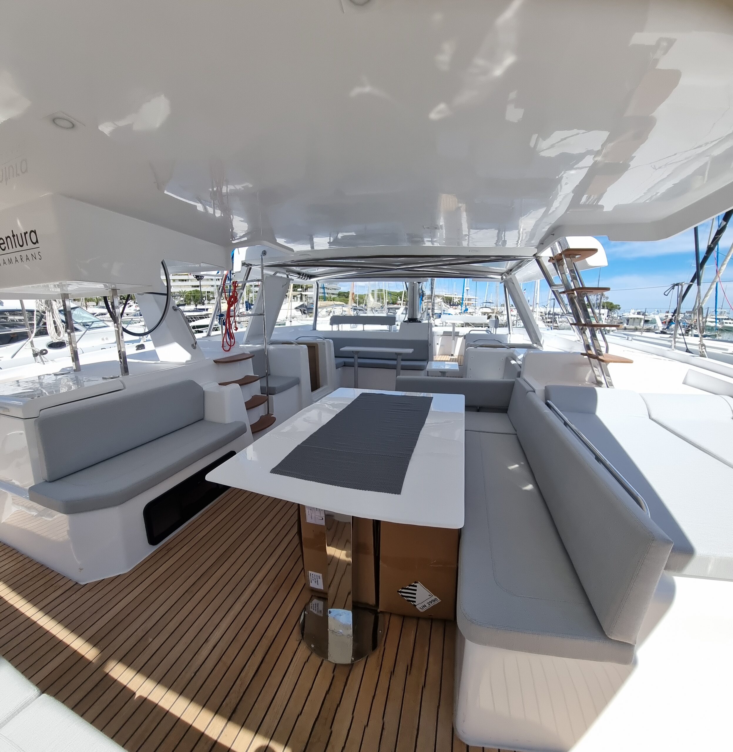- Upper deck with sunshade and plenty of seating to enjoy the view while sailing