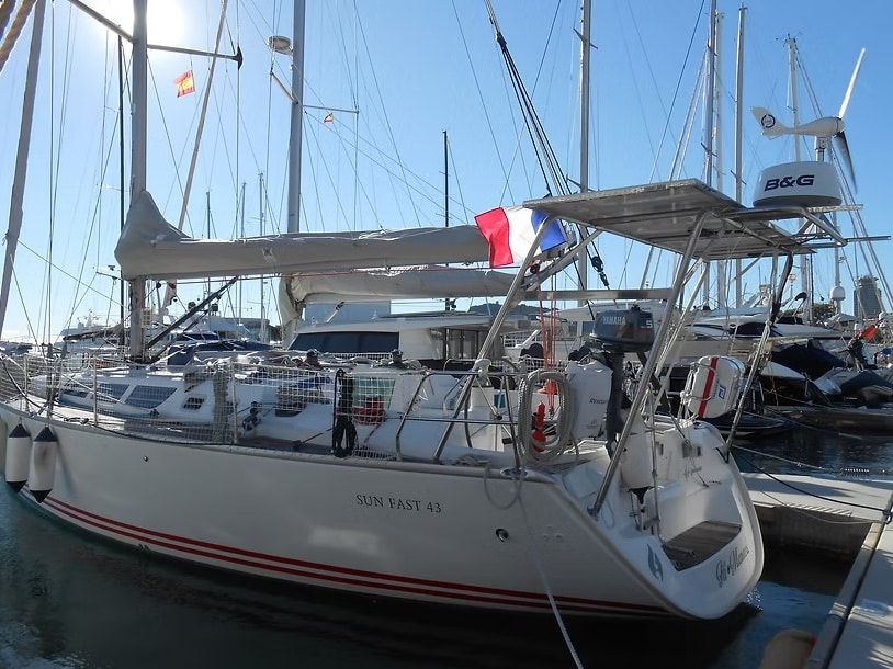 The Sun Fast 43 is a sleek, modern 13.21-meter sailboat designed to combine performance at sea with comfort on board. Its streamlined design and seaworthiness make it a top choice for both competitive sailors and those looking for a fun cruising experience.