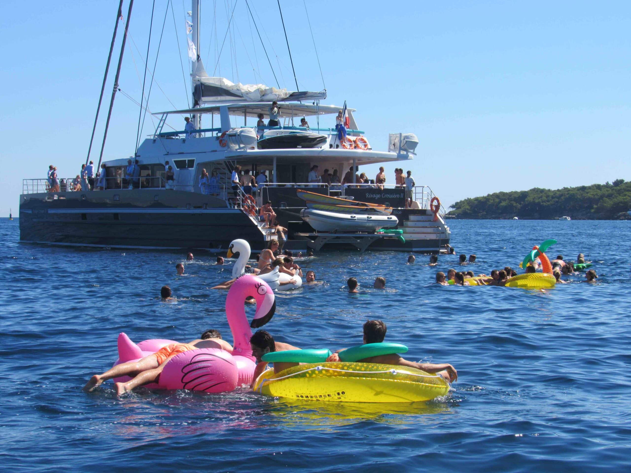Enjoy an exceptional break with your team aboard a spacious and elegant catamaran. With its wide decks, panoramic flybridge, and comfortable interior saloon, every moment at sea combines relaxation and refinement. Create the ideal atmosphere: chill, festive, corporate, or discovery. For impeccable service, we provide premium unbreakable glassware and attentive staff to coordinate and ensure the well-being of participants. Embark on an unparalleled moment of relaxation and sharing at sea!