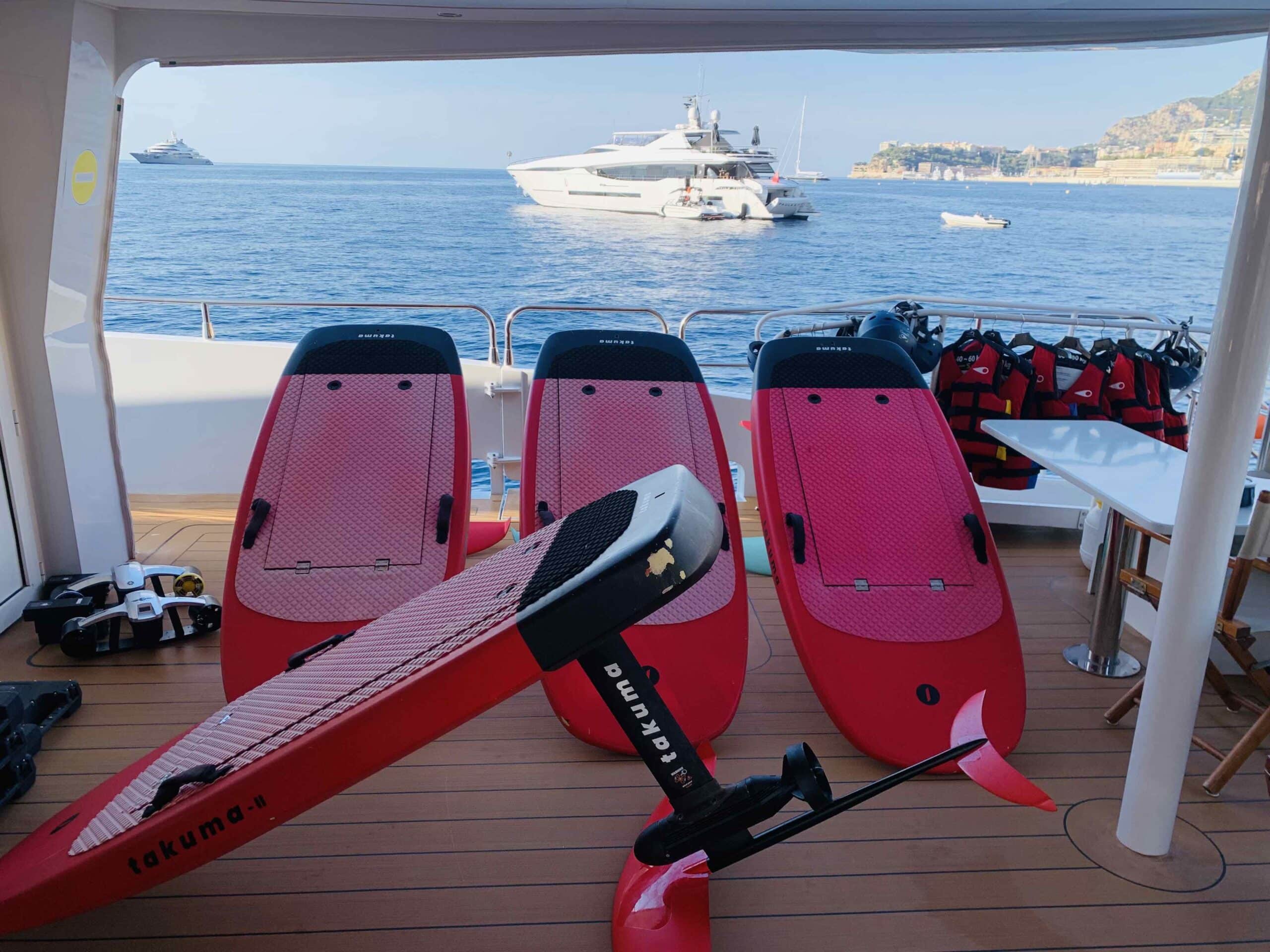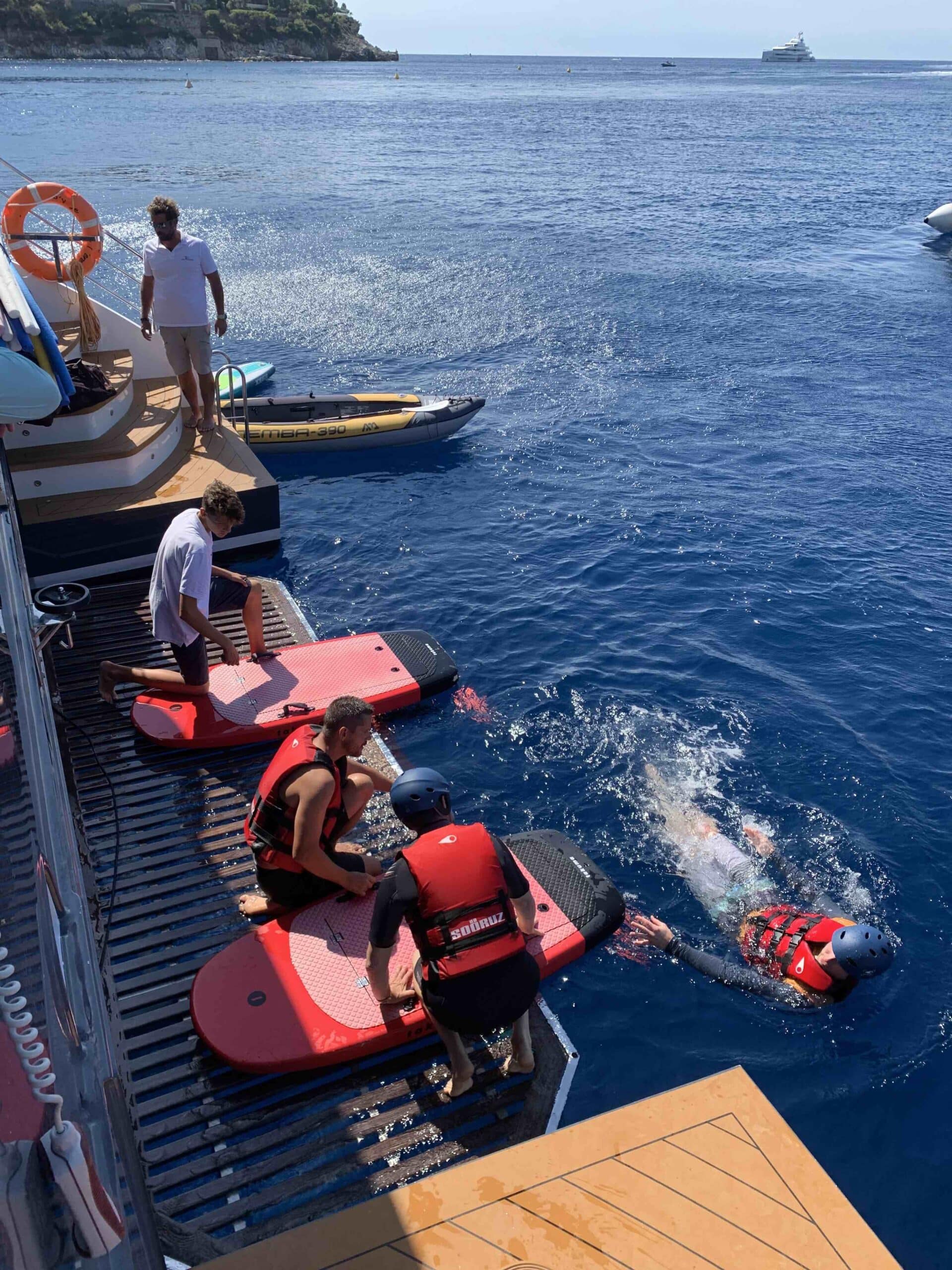 The XXL catamaran is the perfect starting point for a wide variety of water activities: jet skiing, e-foils, wakeboarding, waterskiing, paddleboarding, snorkeling, and much more!