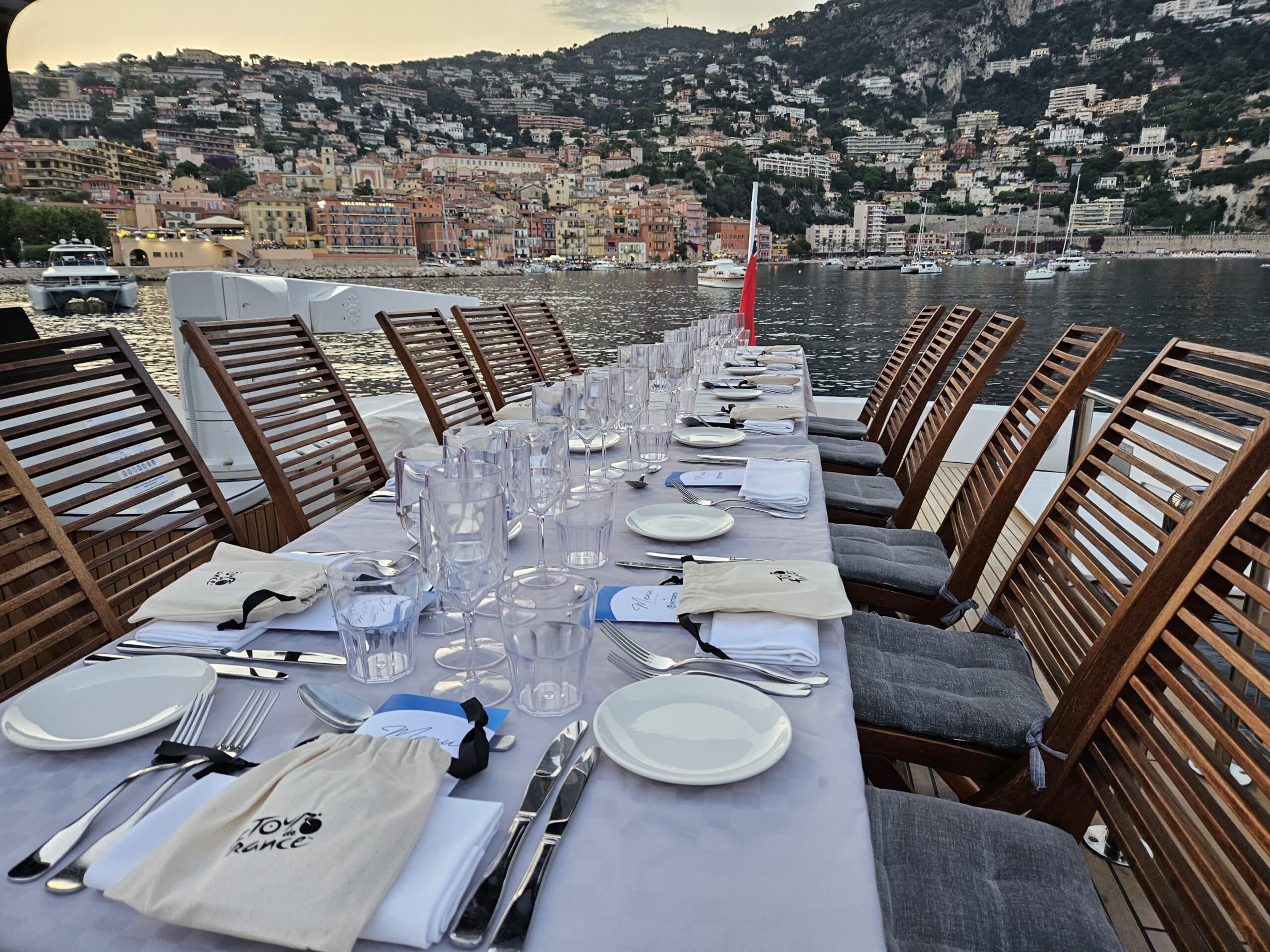 Take your seat for dinner at sunset on a yacht moored at the dock. With its large capacity and warm atmosphere, it is the ideal venue for your private or professional events all year round. The festive atmosphere, attentive service, and exclusive setting make this an unforgettable experience. A timeless moment, combining discreet luxury and shared moments.