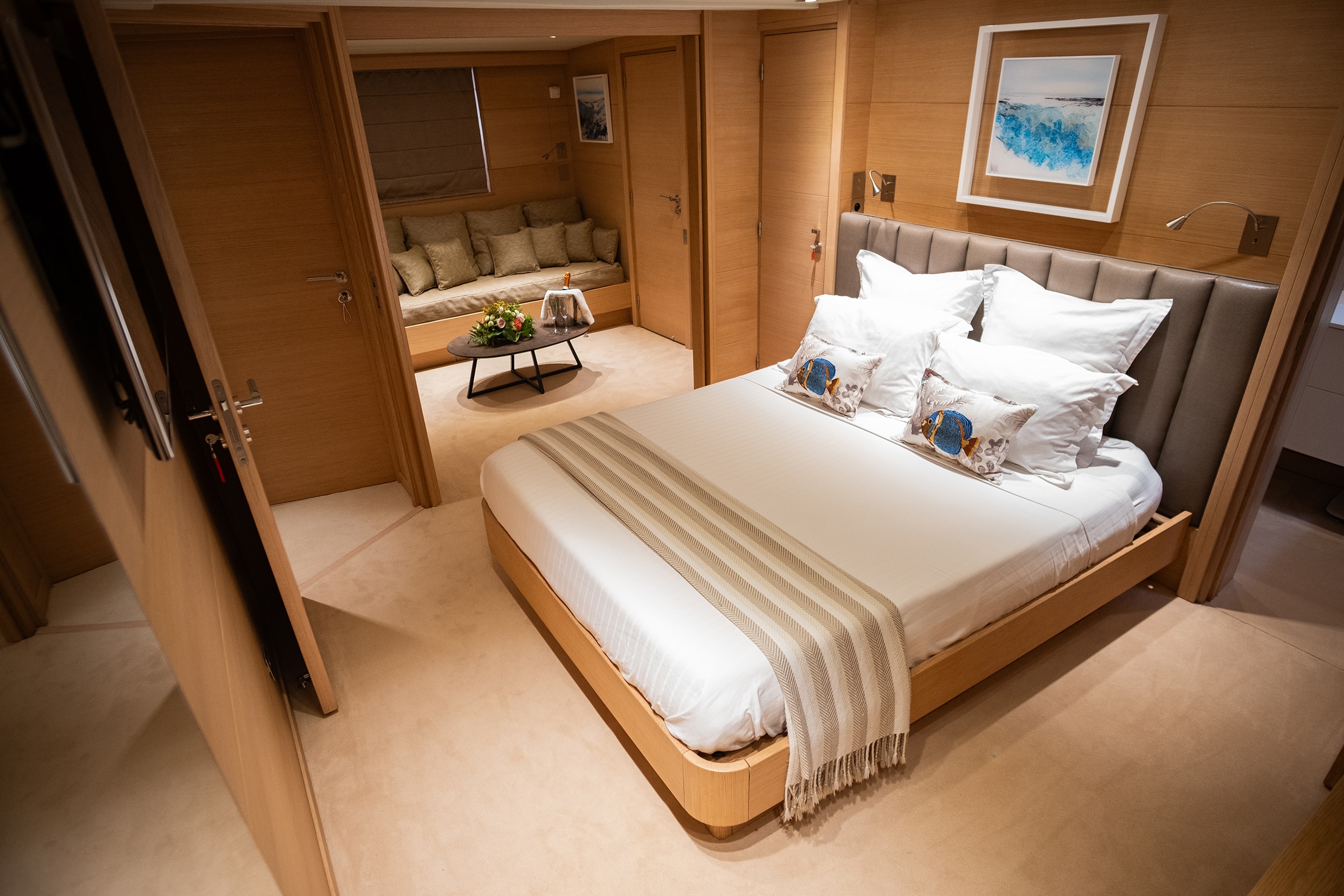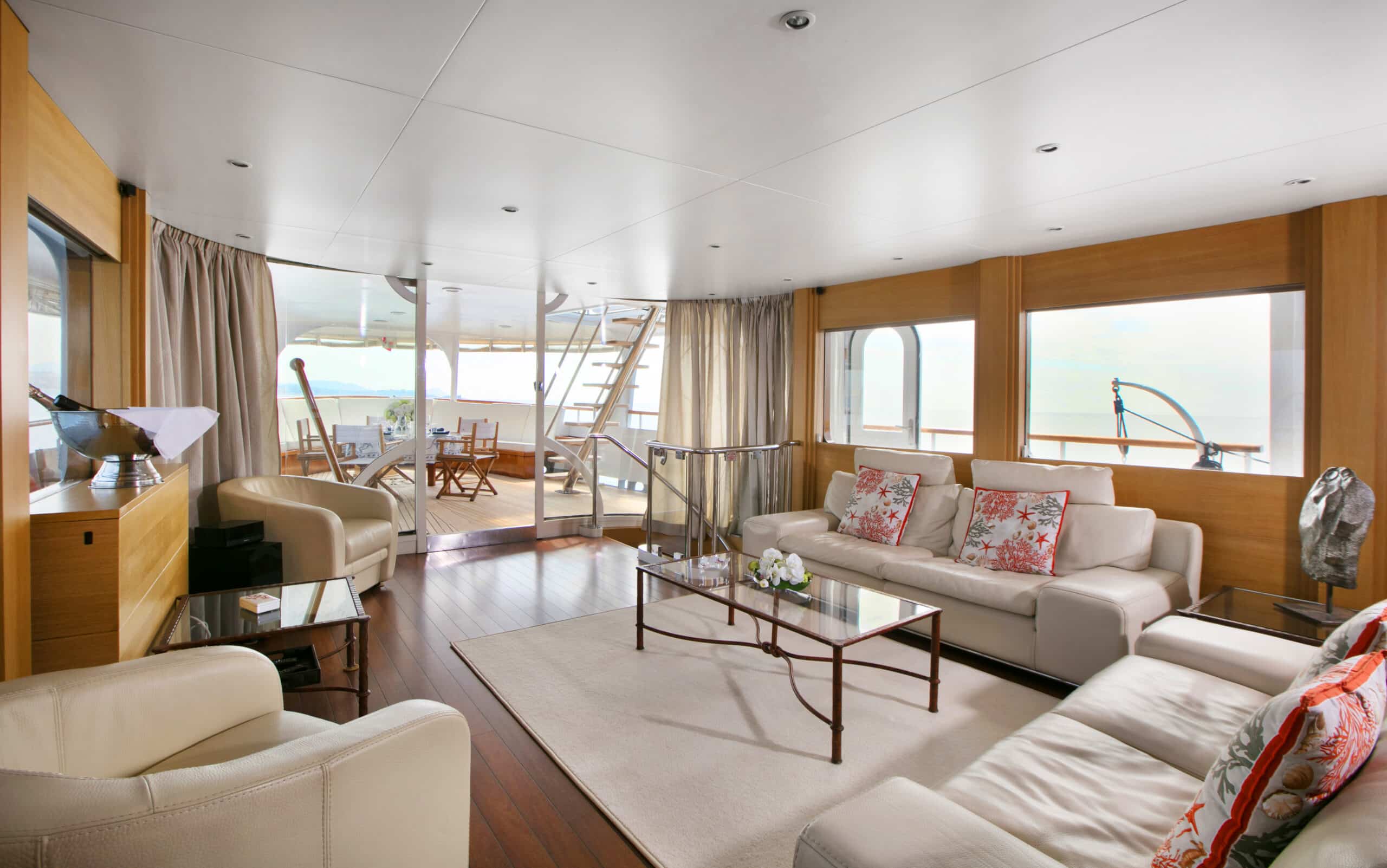 Yacht à moteur au design “old shool”, Lady Jersey offre un style classique et familial avec une ambiance contemporaine dans les intérieurs.